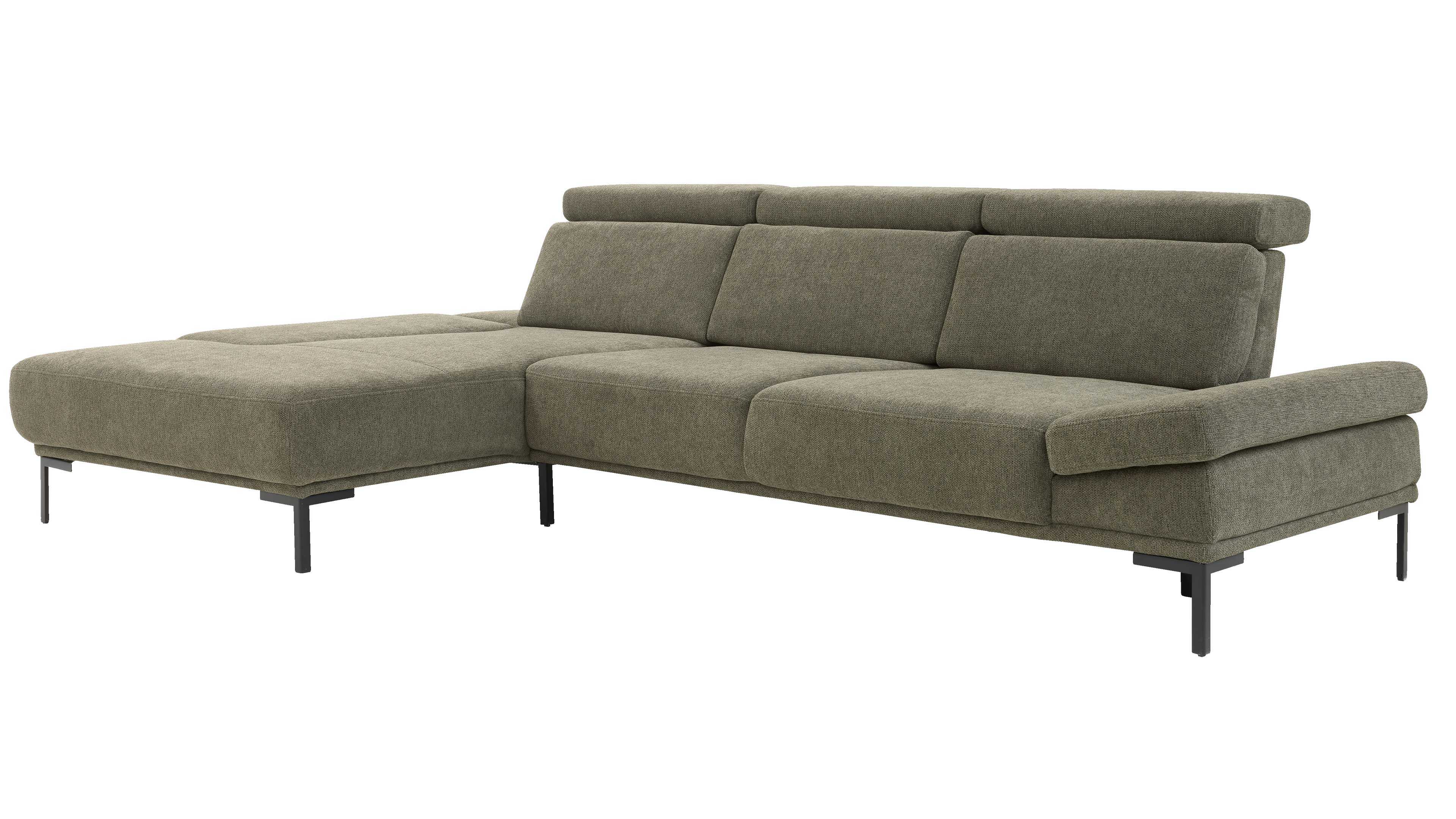 Die Couchlandschaft setzt sich aus einem Longchair mit verstellbarer Armlehne links und einem Zweisitzer mit fester Armlehne rechts zusammen. Besonders praktisch: Der Zweisitzer verfügt über eine manuelle Sitztiefenverstellung, die sich stufenlos an deine Sitzgewohnheiten anpasst – ideal für maximale Flexibilität beim Entspannen.