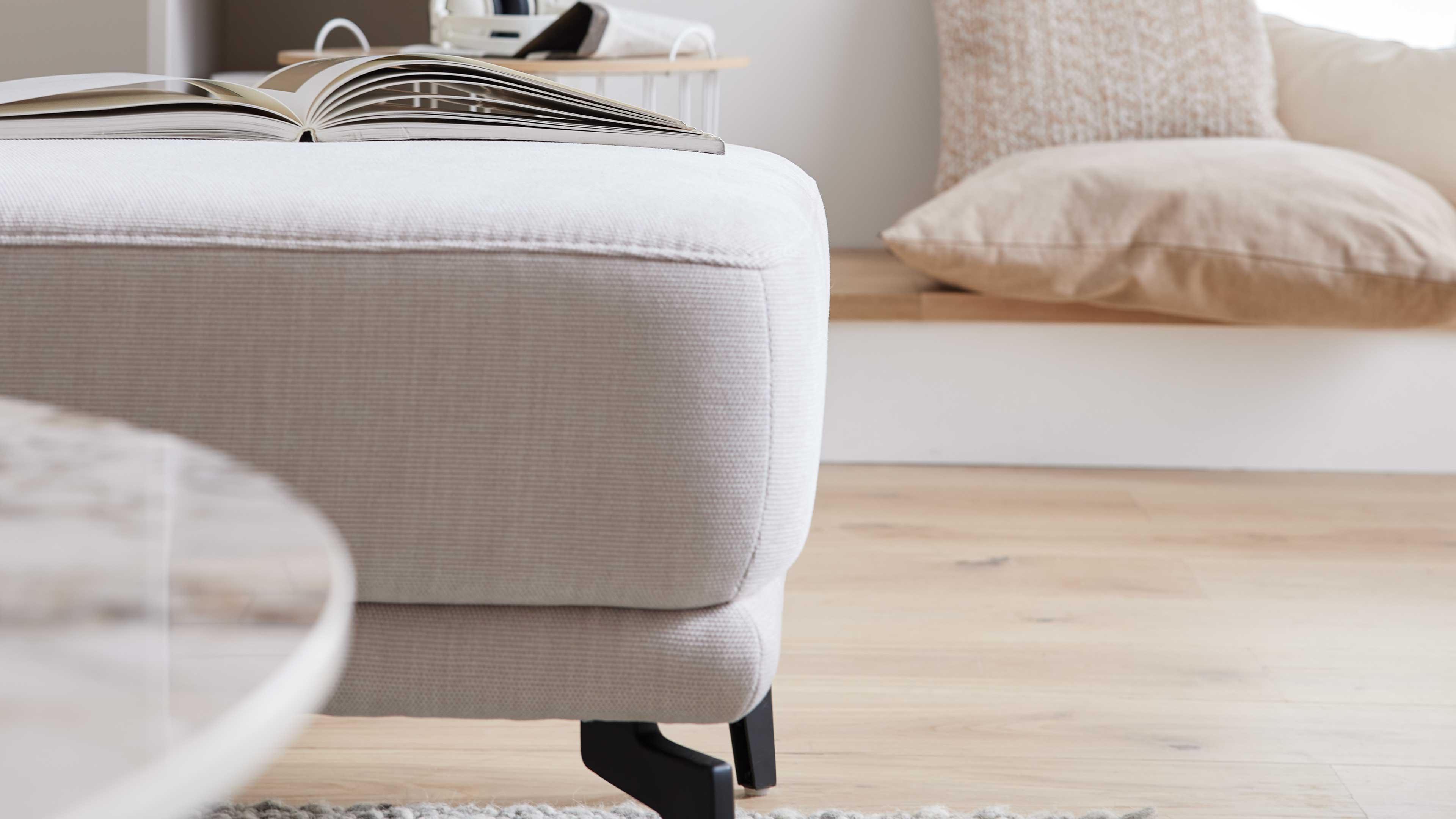 Das Ecksofa aus der Interliving Sofa Serie 4450 vereint zeitgemäßes Design mit durchdachter Funktionalität – für ein stilvolles Zuhause mit echter Wohlfühlgarantie. Der elegante ecrufarbene Webstoffbezug bringt eine warme, einladende Atmosphäre in deinen Wohnbereich, während die mattschwarzen Metall-Winkelfüße (Modell W010-M01) moderne Akzente setzen und die klare Formensprache unterstreichen.