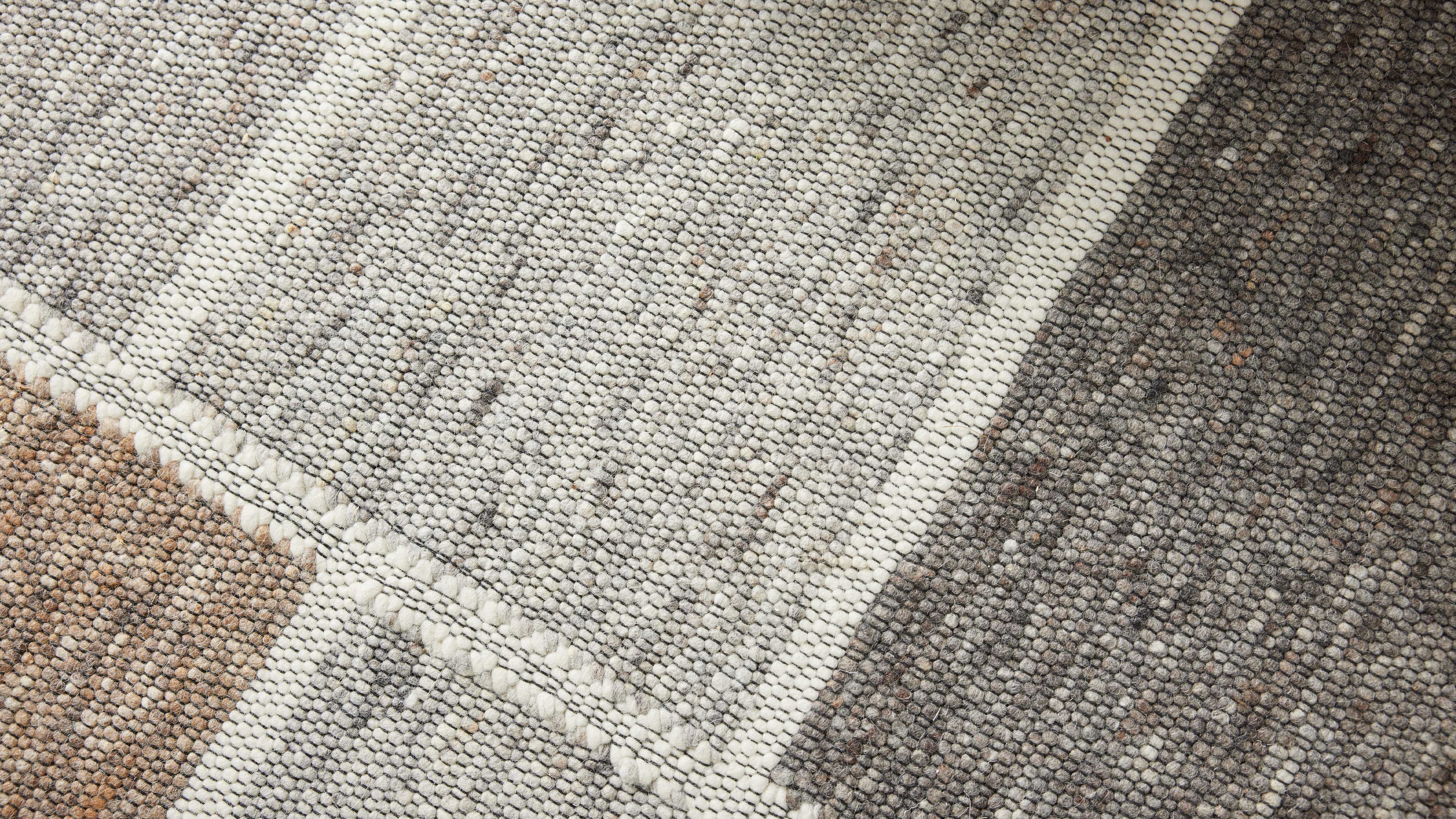 Die Oberseite besteht zu 100 % aus gewalkter Schurwolle, die sich durch ihre Strapazierfähigkeit, Langlebigkeit und angenehme Haptik auszeichnet. Die Unterseite ist aus einem nachhaltigen Mix aus 60 % Schurwolle und 40 % Jute gefertigt – robust, umweltfreundlich und stabil zugleich. Mit Maßen von ca. 140 x 190 cm (BxL) eignet sich der Teppich hervorragend als Akzentfläche.