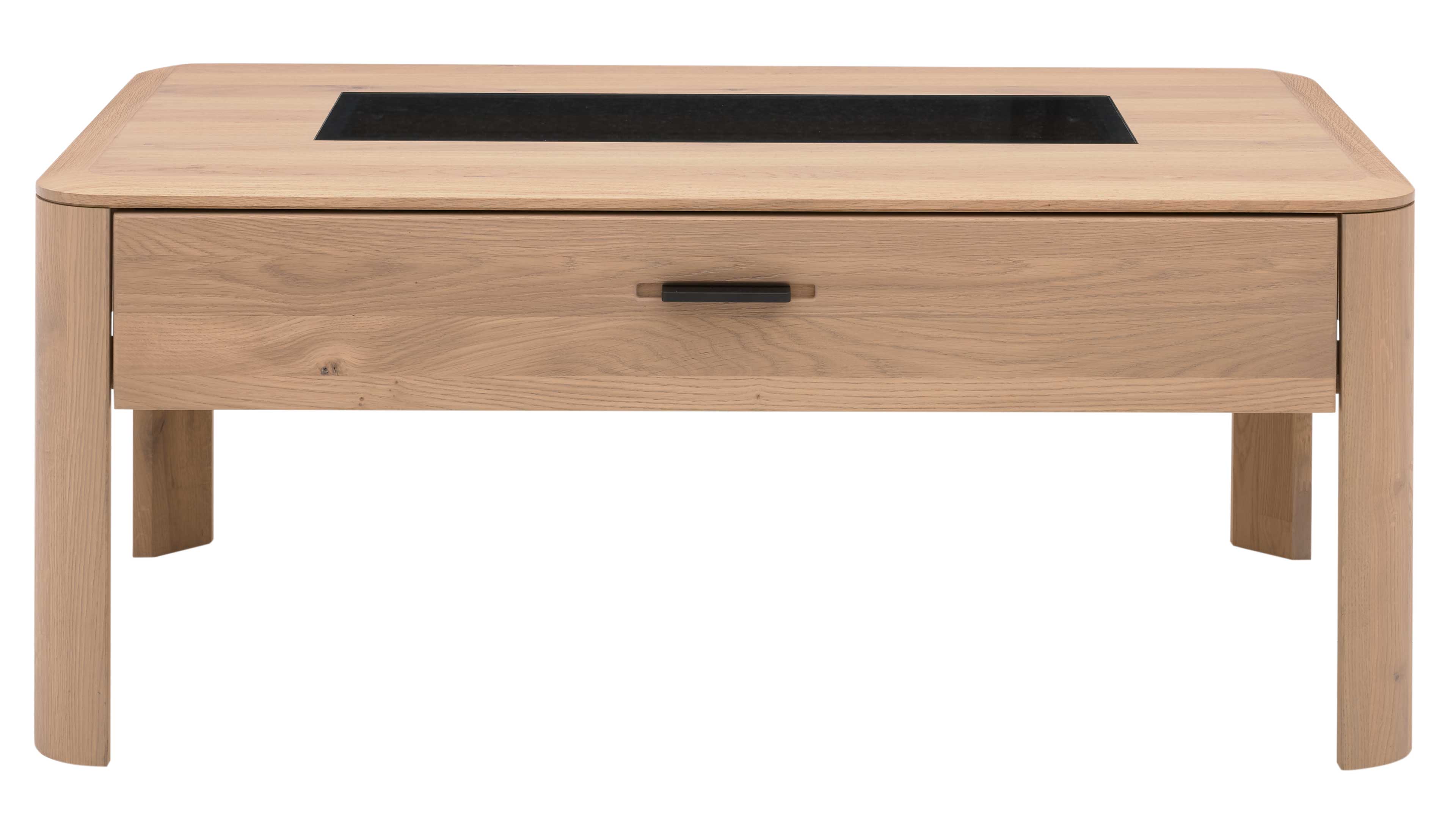 Couchtisch mit Schublade in Wildeiche und Akzenten in Steinfurnier
