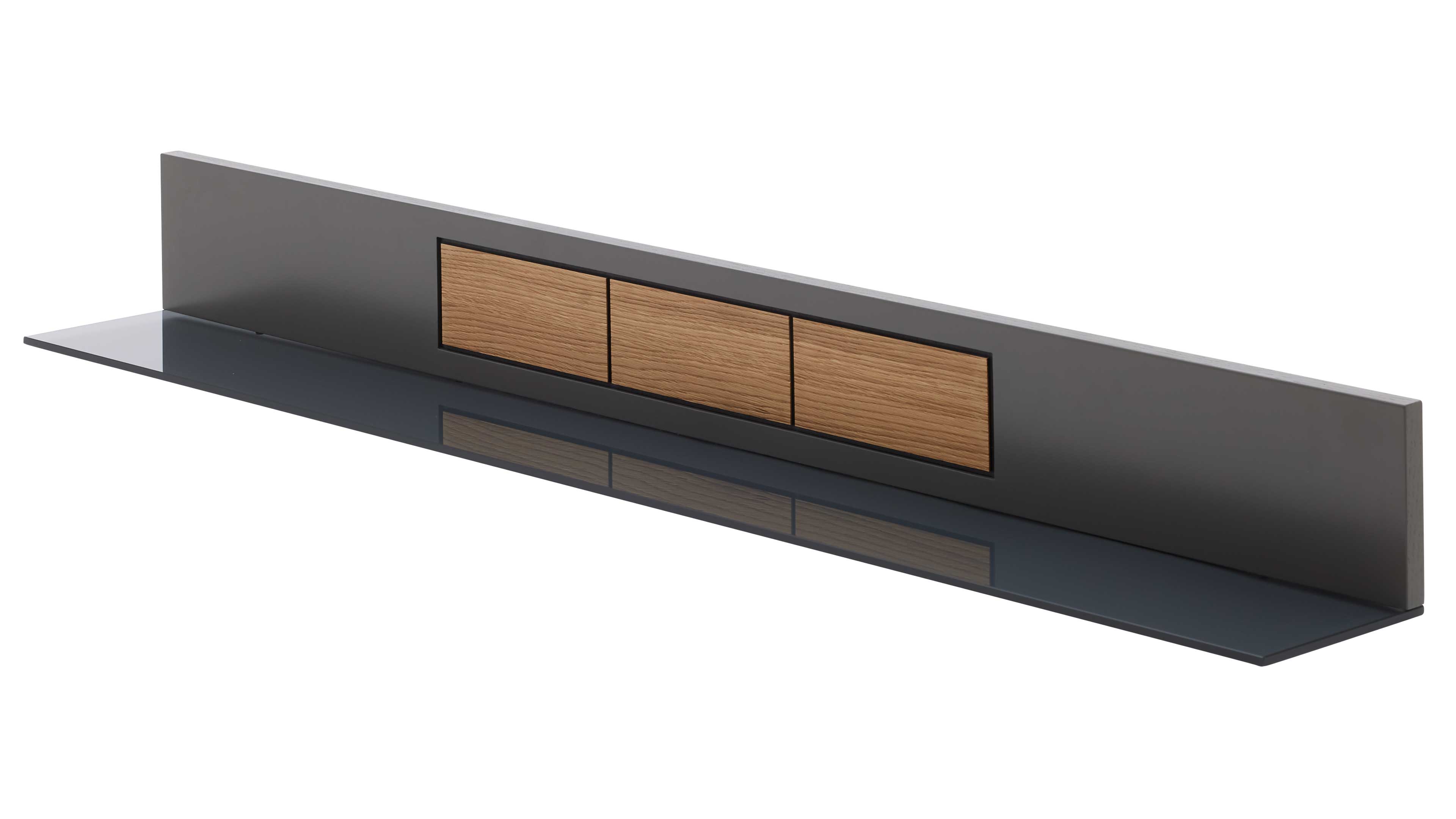 – ein Wandboard mit Spaltholz-Akzent und Glasboden, ca. 150 x 17 x 22 cm (BxHxT)