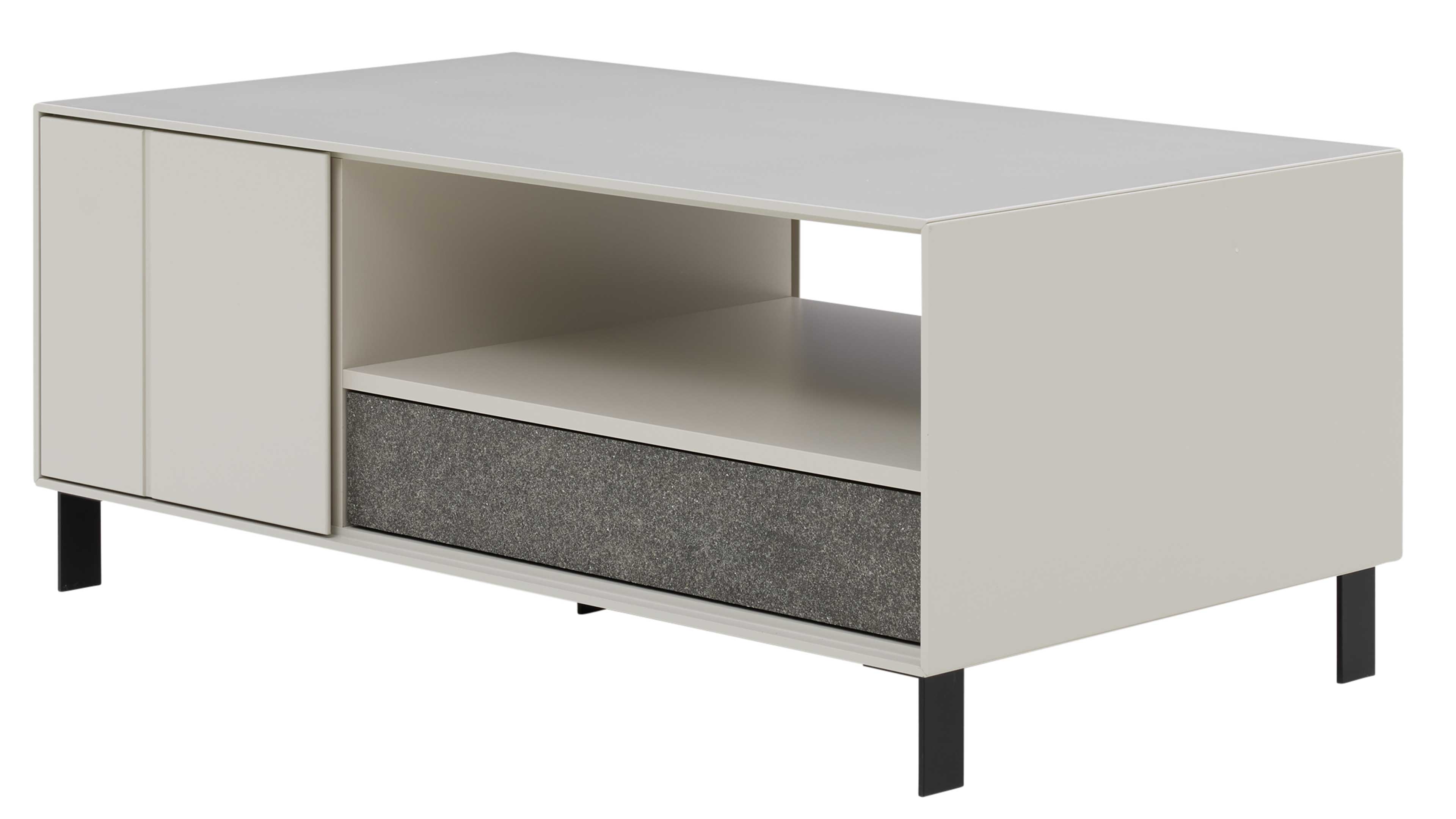 Couchtisch mit Schublade in Hellgrau und Steinfurnier-Akzenten