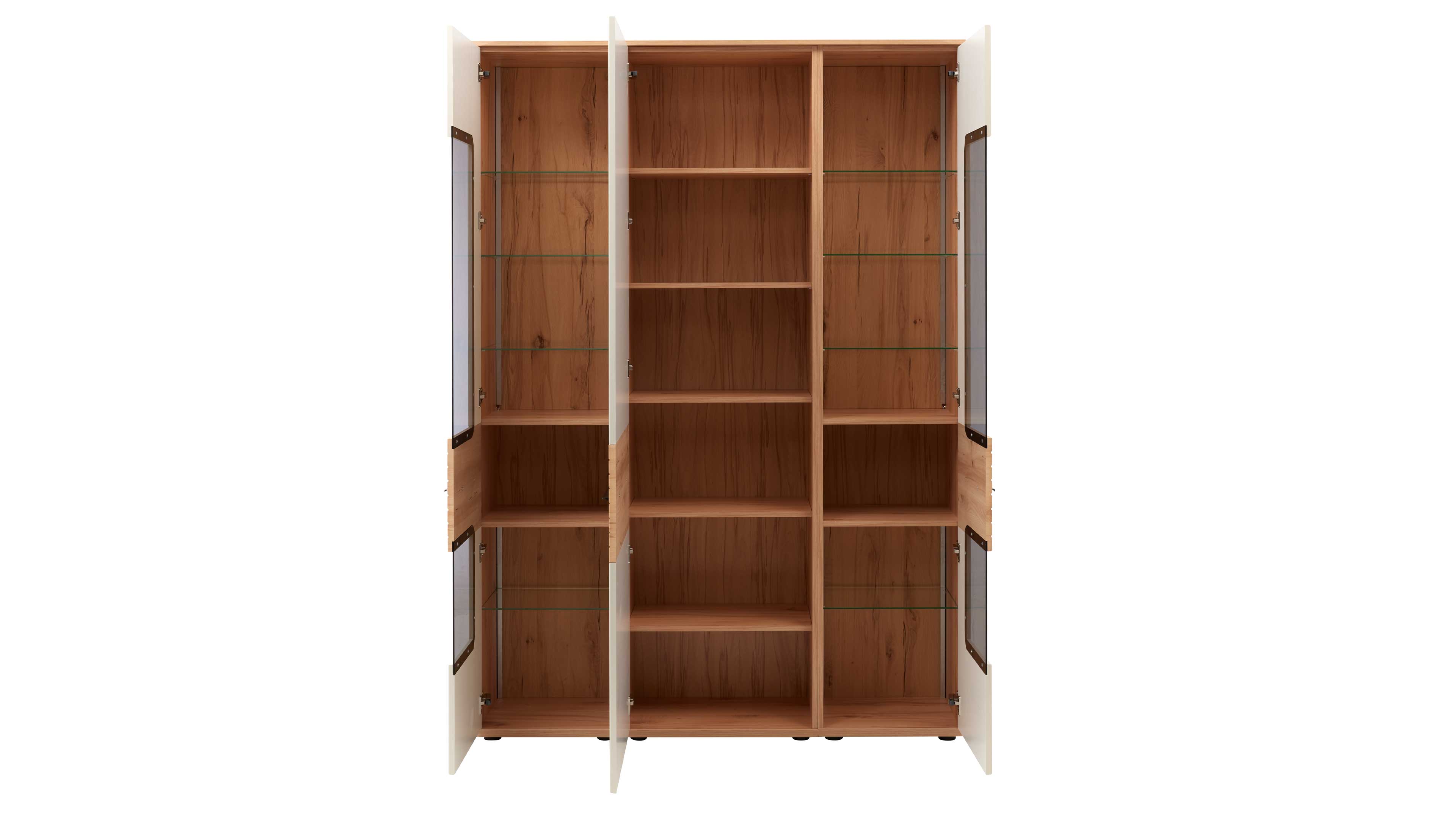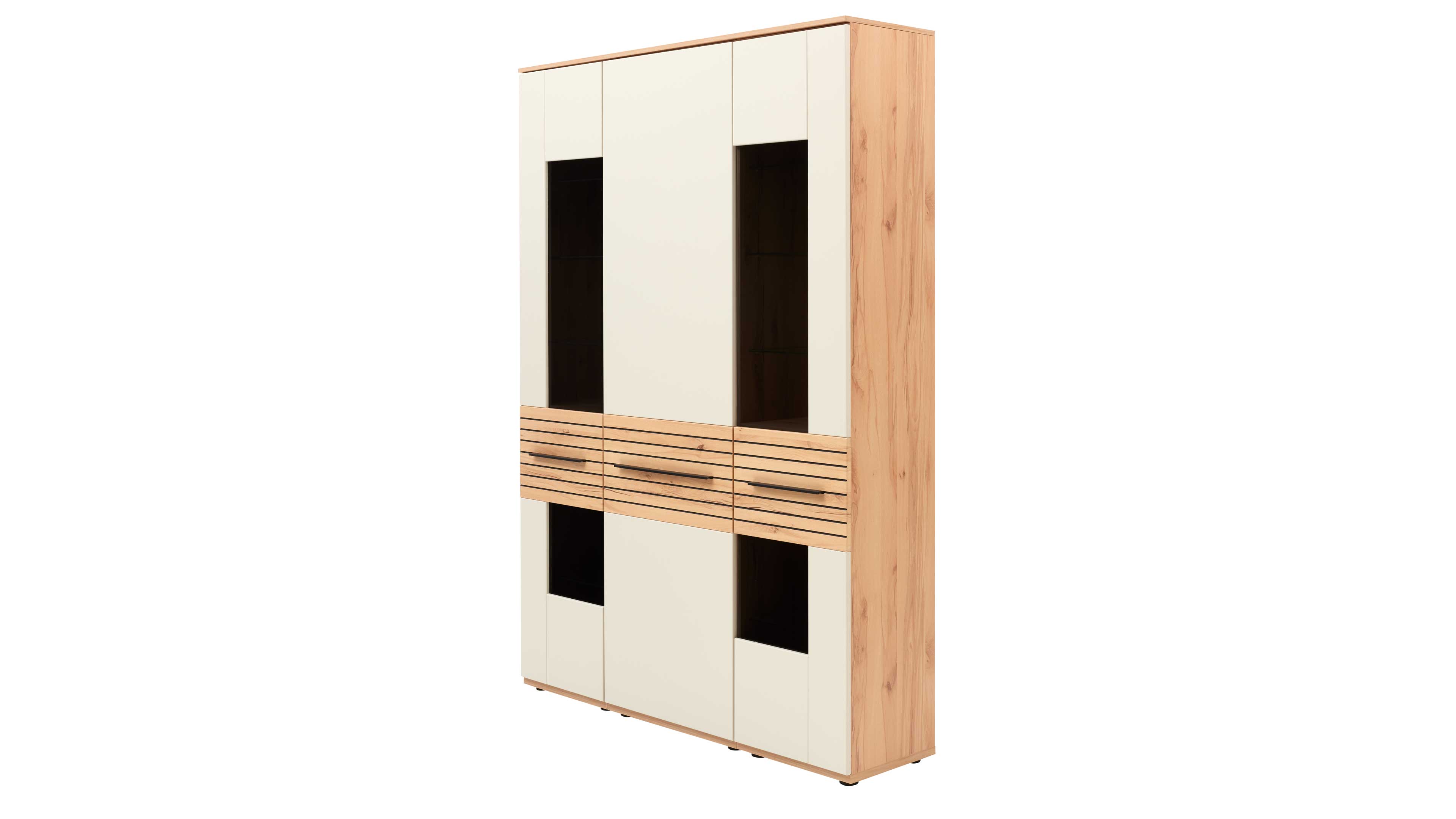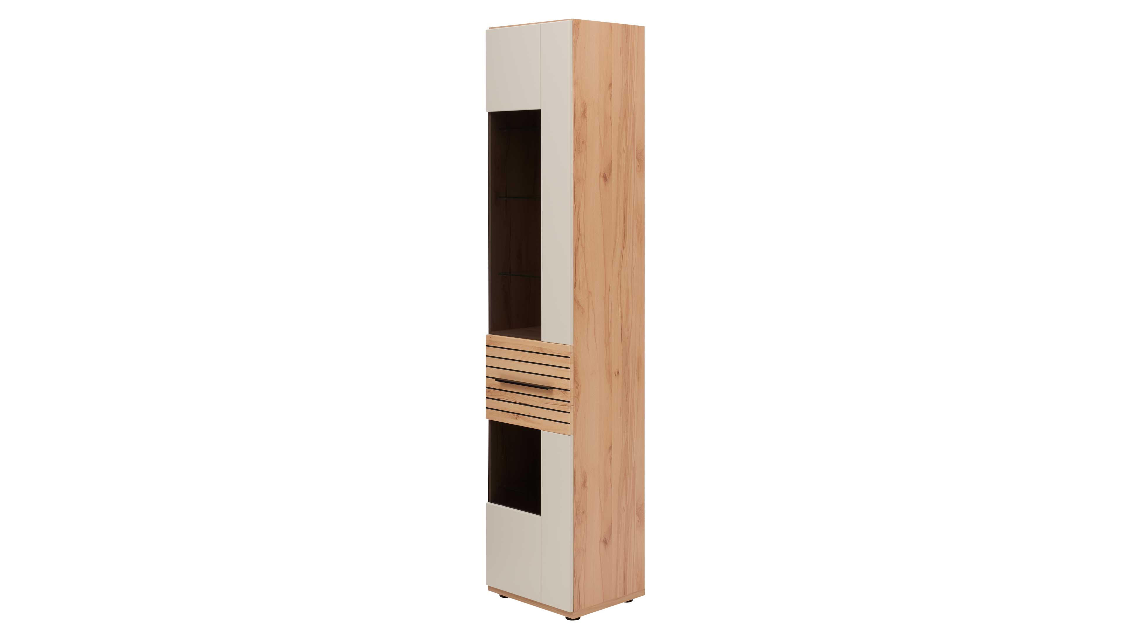 Vitrinenschrank in Sandbeige & Risseiche Dekor