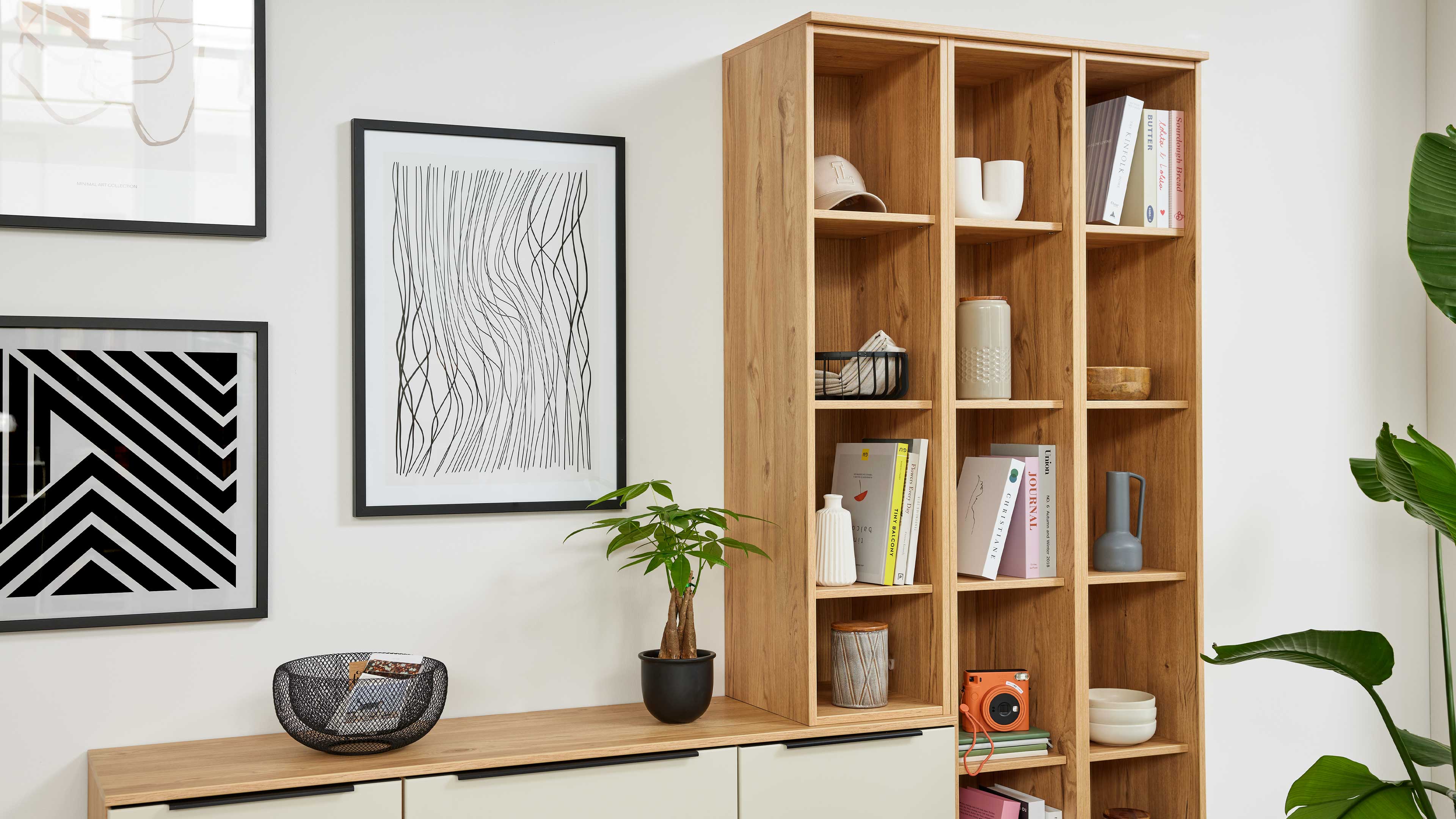 Regalkombination – strukturierte Eleganz auf schmaler Fläche