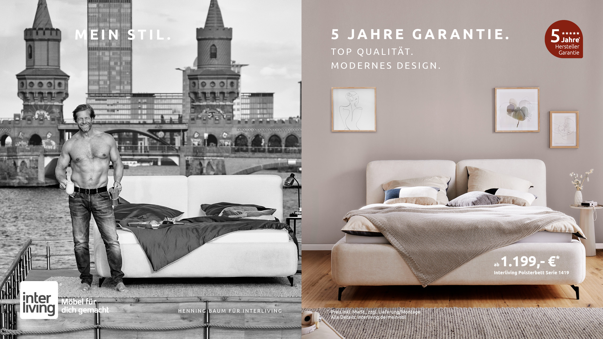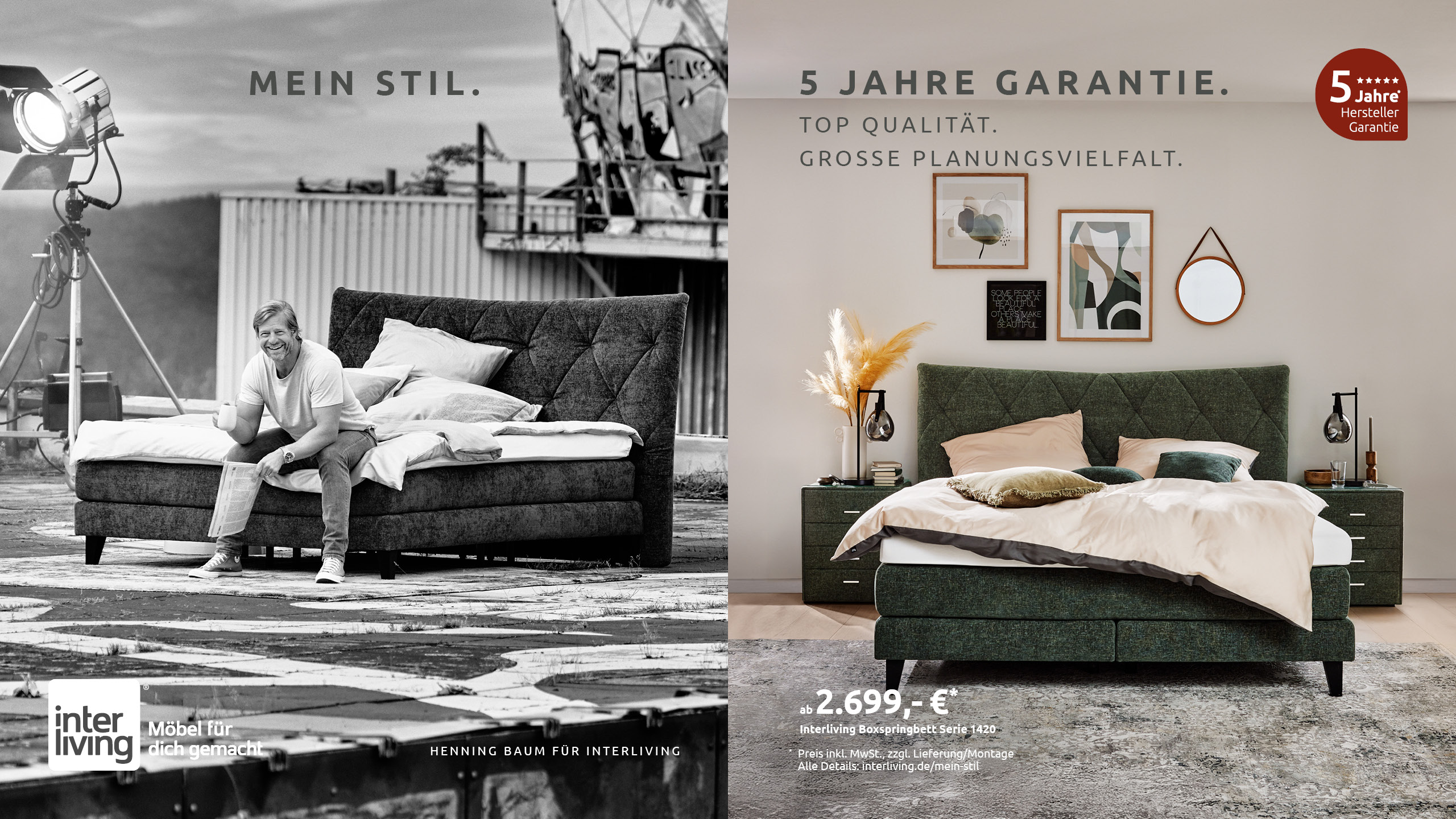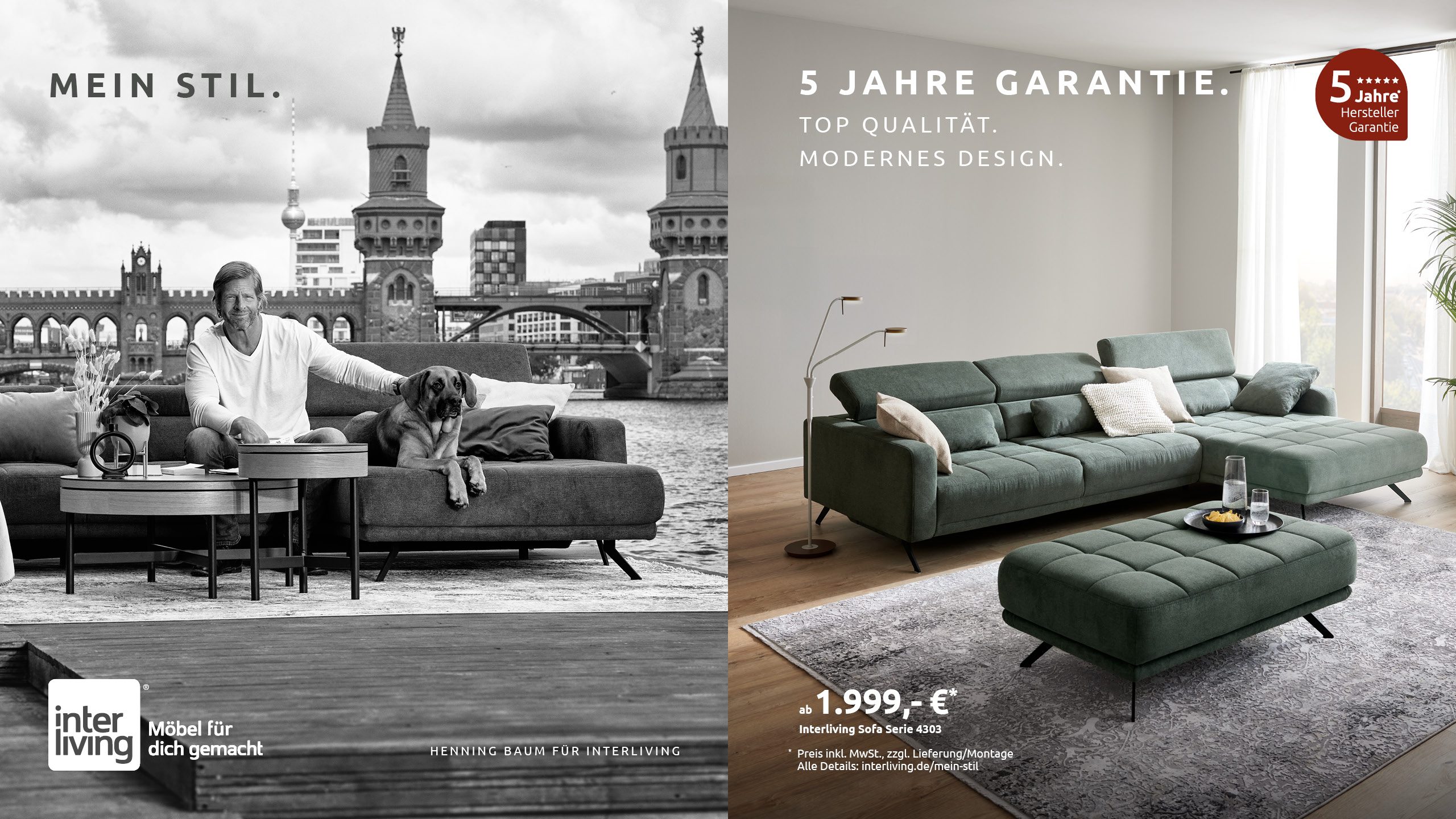 Was passiert, wenn Persönlichkeit auf Wohnstil trifft? Genau das zeigt die Kampagne „Mein Stil“ von Interliving mit Schauspieler Henning Baum. In emotionalen Clips an besonderen Orten wird klar: Wohnen ist mehr als Einrichtung. Es ist Ausdruck deiner Persönlichkeit.