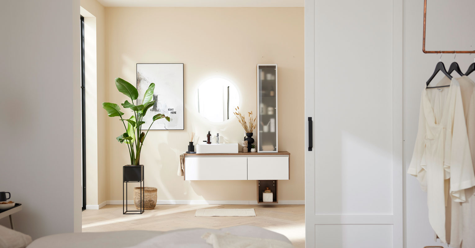 Mit Interliving Badmöbeln gestaltest du dein Badezimmer zu einer Wohlfühloase. Moderne Designs, hochwertige Materialien und funktionale Lösungen schaffen Ordnung und verleihen deinem Bad eine stilvolle Atmosphäre.