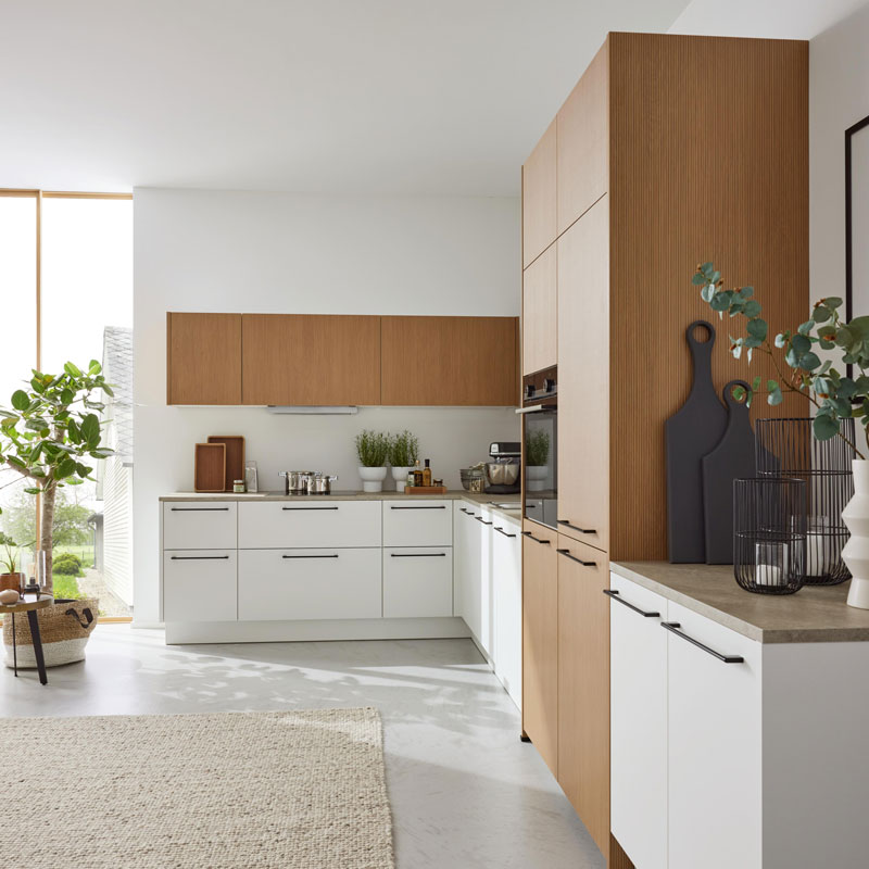 Deine neue Küche soll dir lange gefallen – optisch und haptisch. Ob puristisch in Mattlack, wohnlich mit Holzdekor oder kontrastreich in Schwarz-Weiß: Bei Interliving kannst du aus vielen Farben, Oberflächen und Griffvarianten wählen – natürlich alles in hochwertiger Verarbeitung.