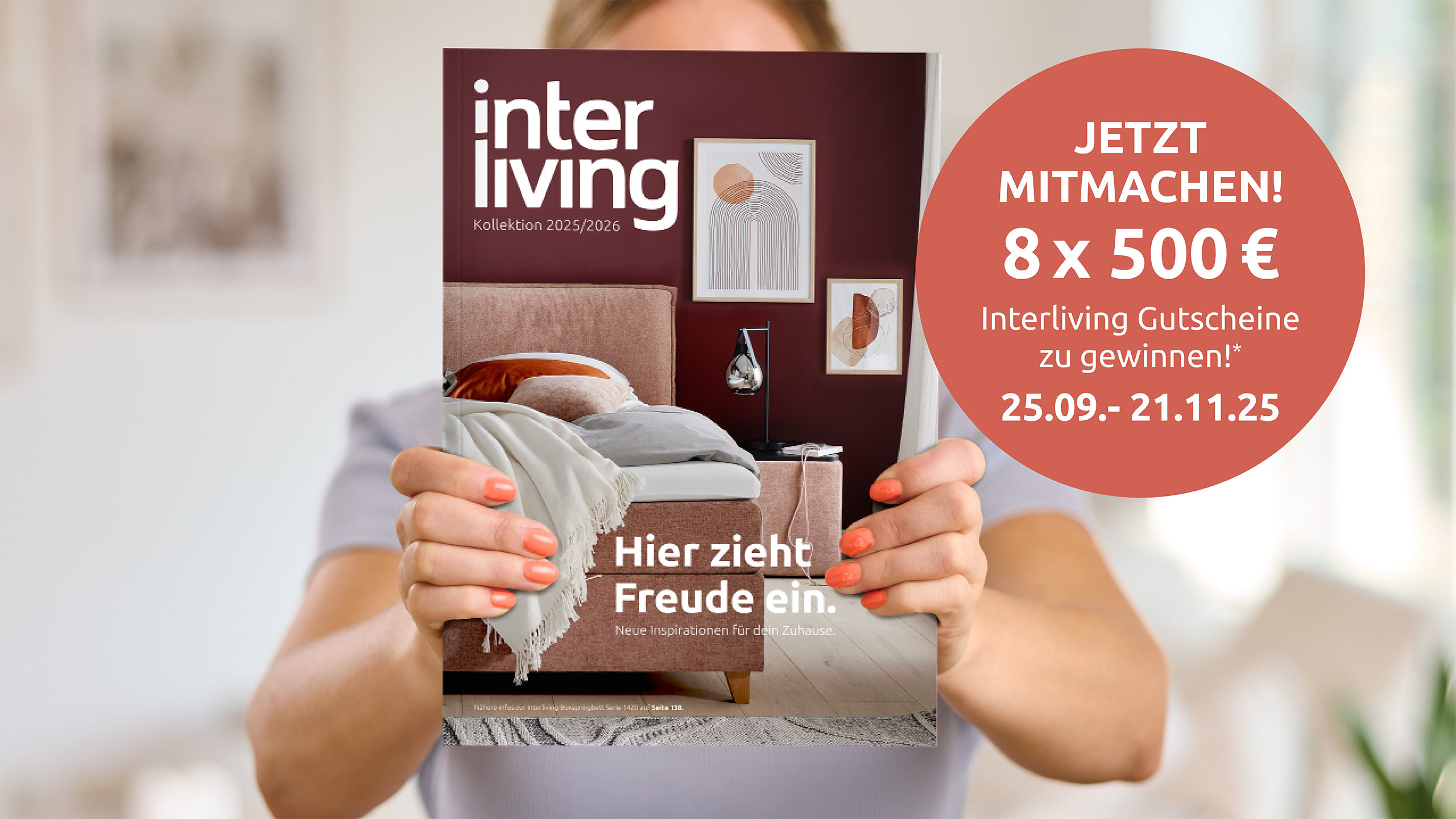 nutze jetzt die Chance und mach mit bei unserem Wohnbuch Gewinnspiel!Gewinne einen von 8 Interliving Gutscheinen im Wert von je 500€.