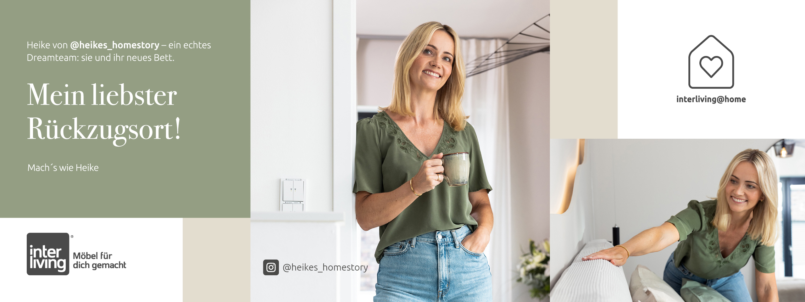 Heikes neues Schlafzimmer ist mehr als ein Raum – es ist ein Ort zum Ankommen. Zwischen Familienalltag, Sport und Content Creation findet sie hier die Ruhe, die sie braucht. Das Interliving Bettensystem Serie 1416 unterstreicht dieses Gefühl: weich im Design, klar in der Form, kompromisslos in der Qualität.